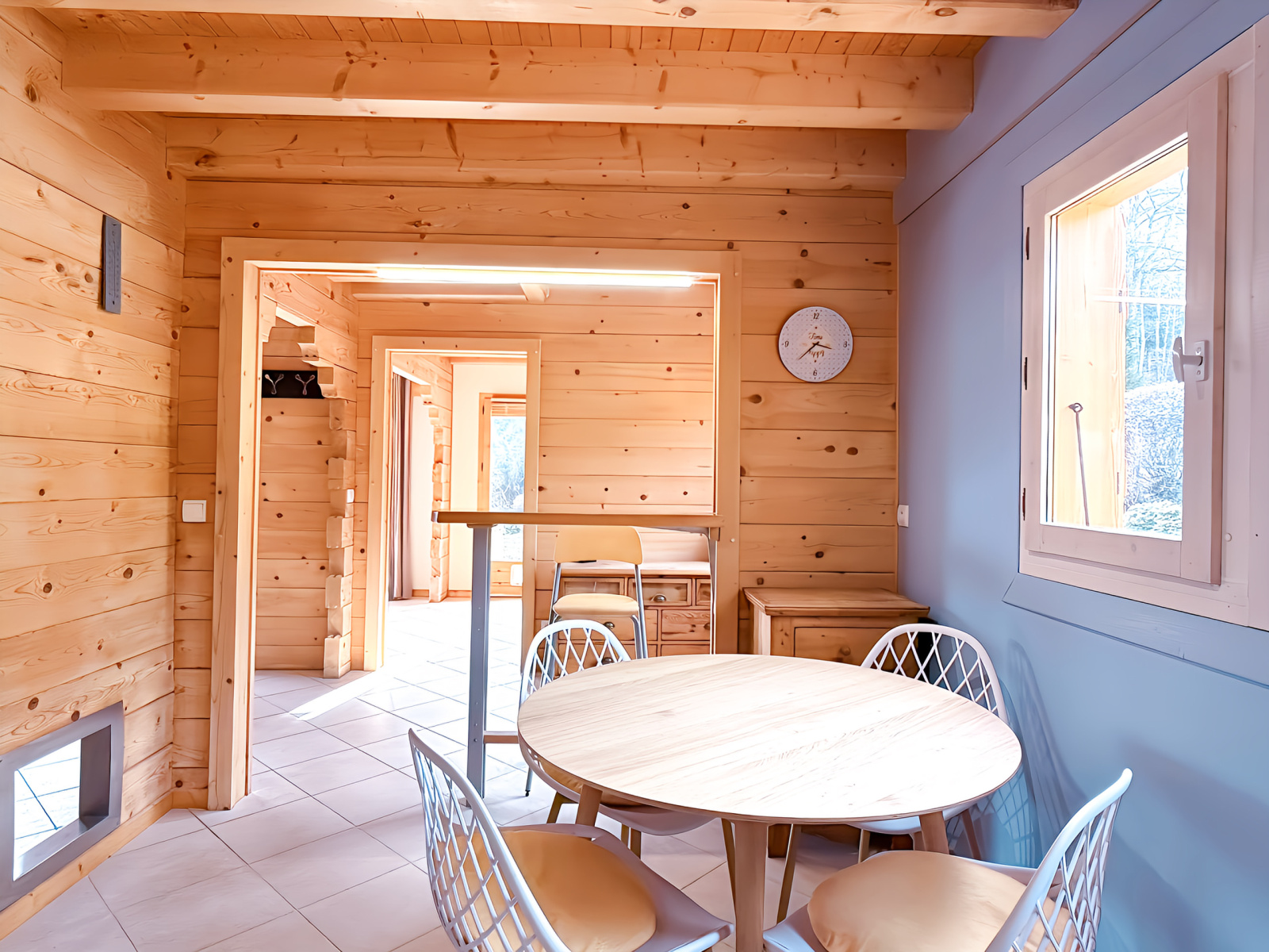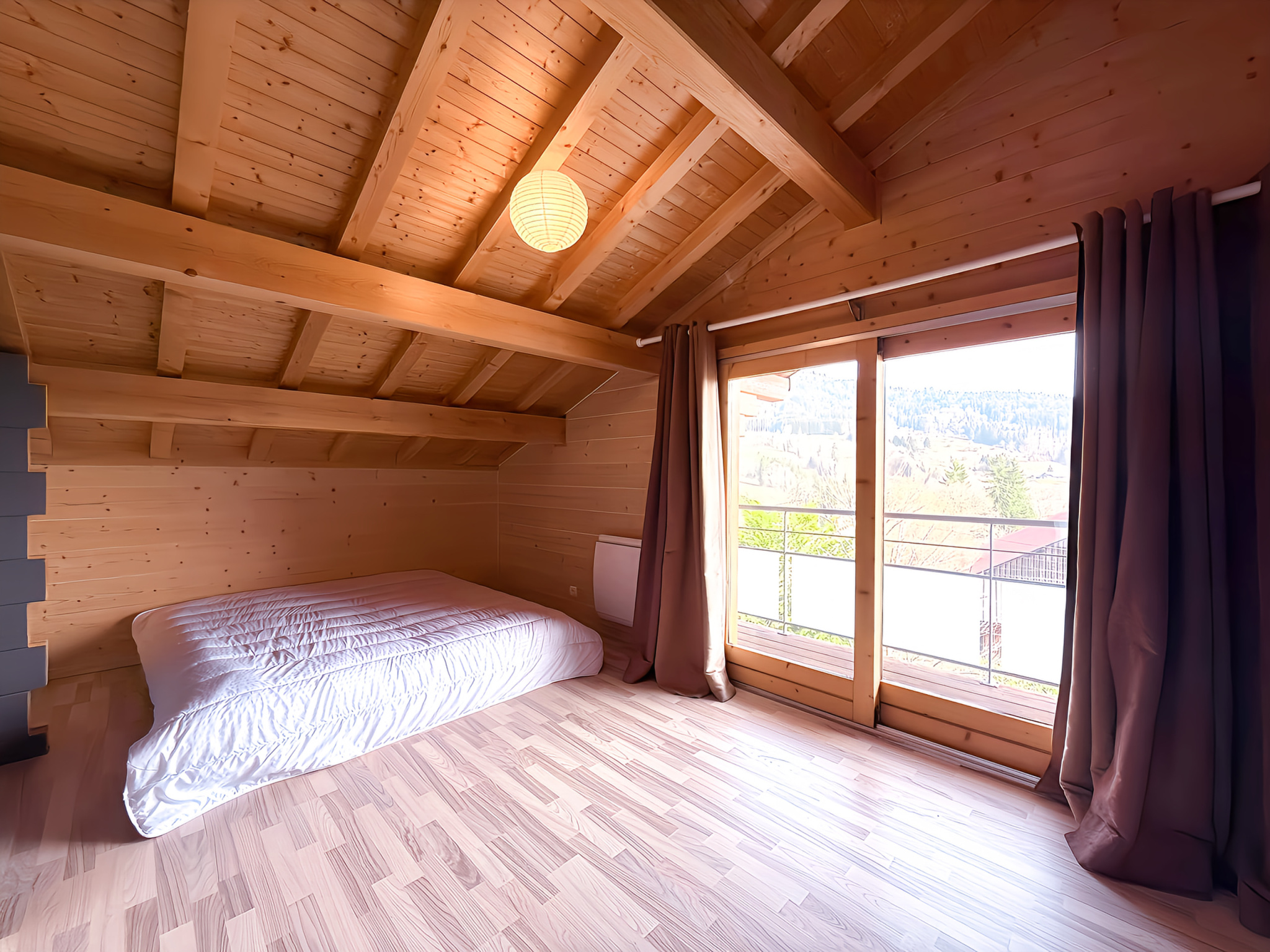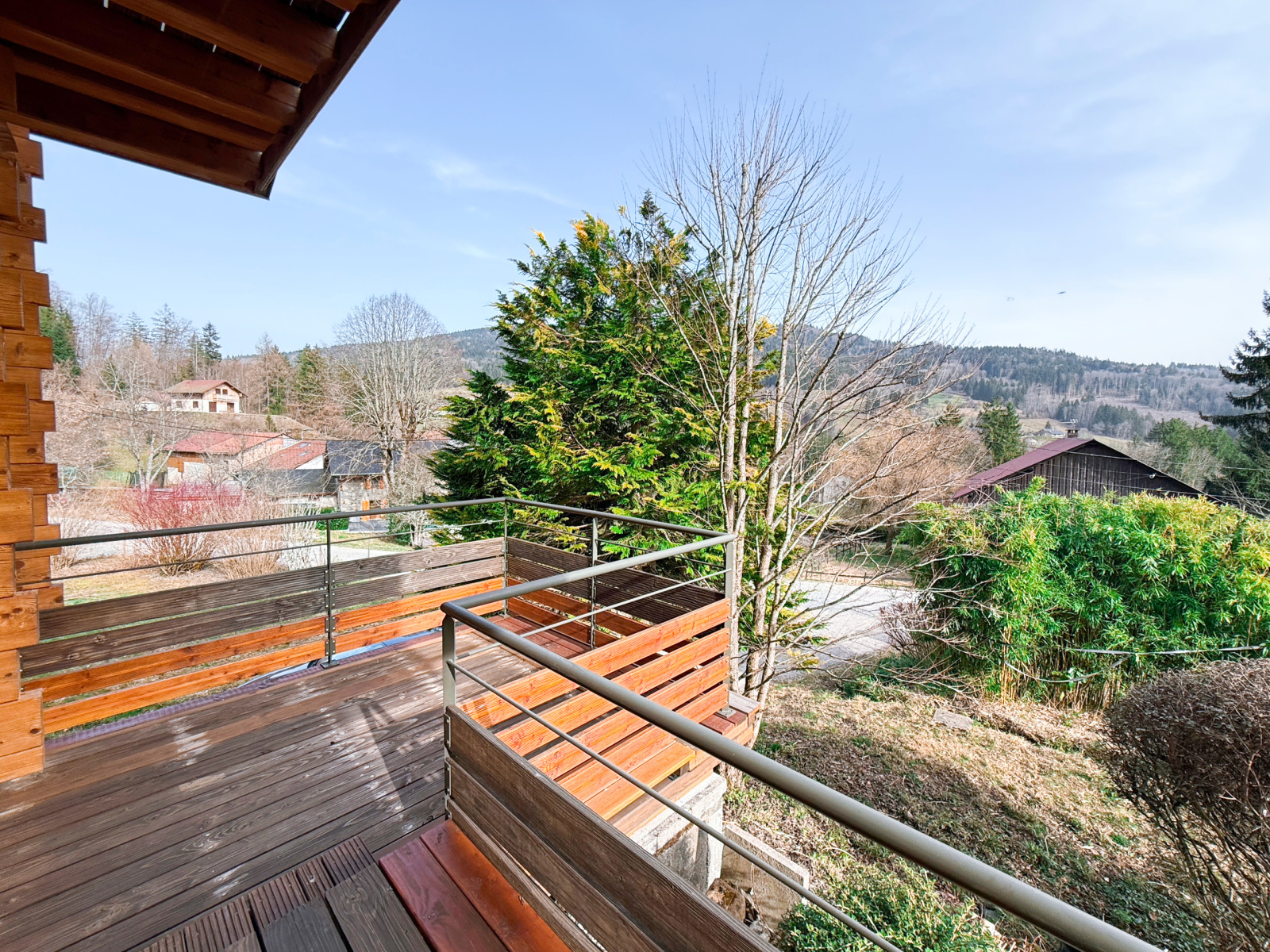 Entre Boëge et Saxel, dans un environnement calme et agréable, charmant chalet meublé de 4 pièces d'une surface de 111 m2 composé comme suit :