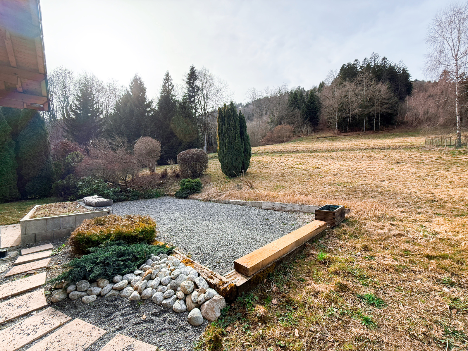 Le chalet est érigé sur un terrain arboré de 1 634 m2.