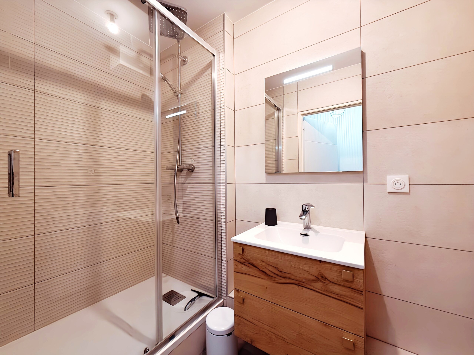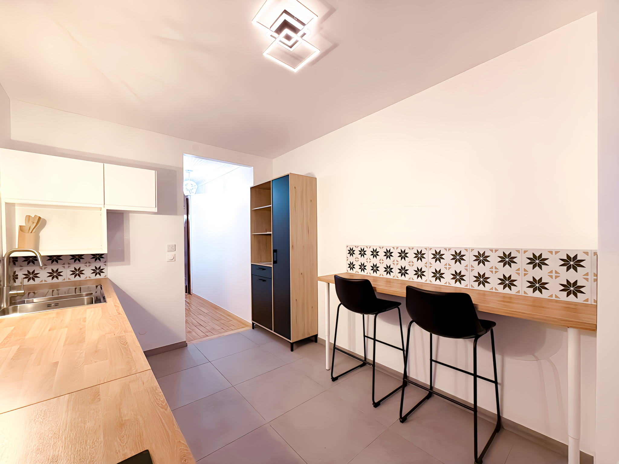 En plein centre-ville, appartement T1 entièrement rénové de 32,58 m2, au 3ème étage (sans ascenseur), loué meublé, comprenant :