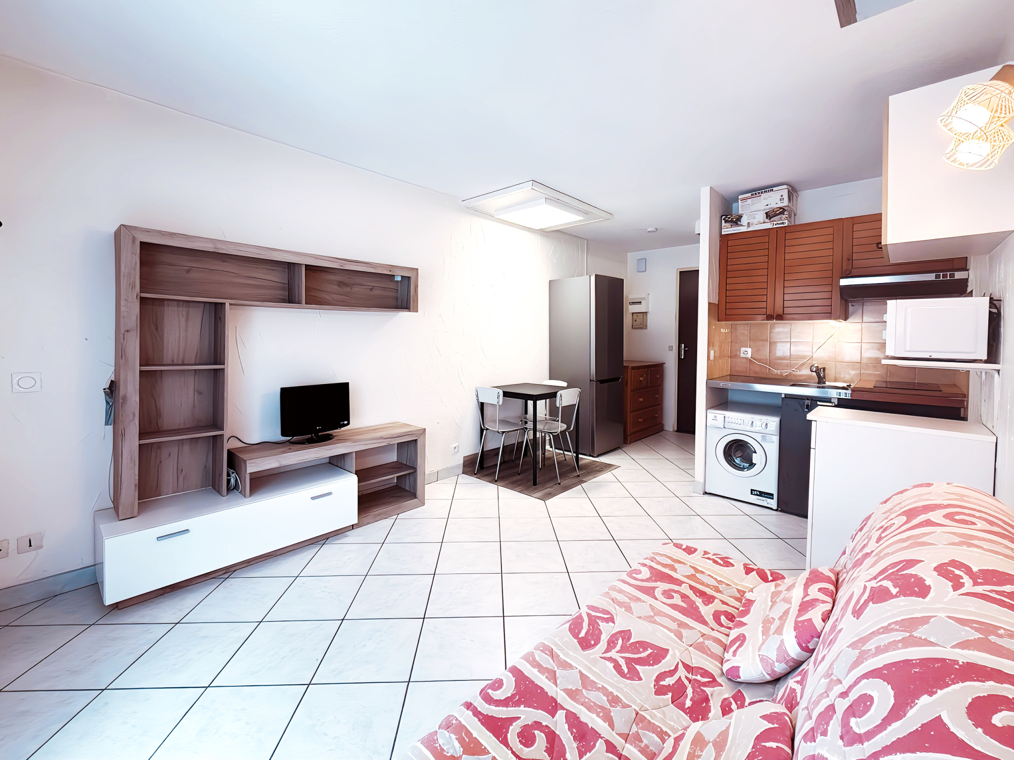 Studio de 20 m2, au rez-de-chaussée, entièrement meublé, comprenant :
