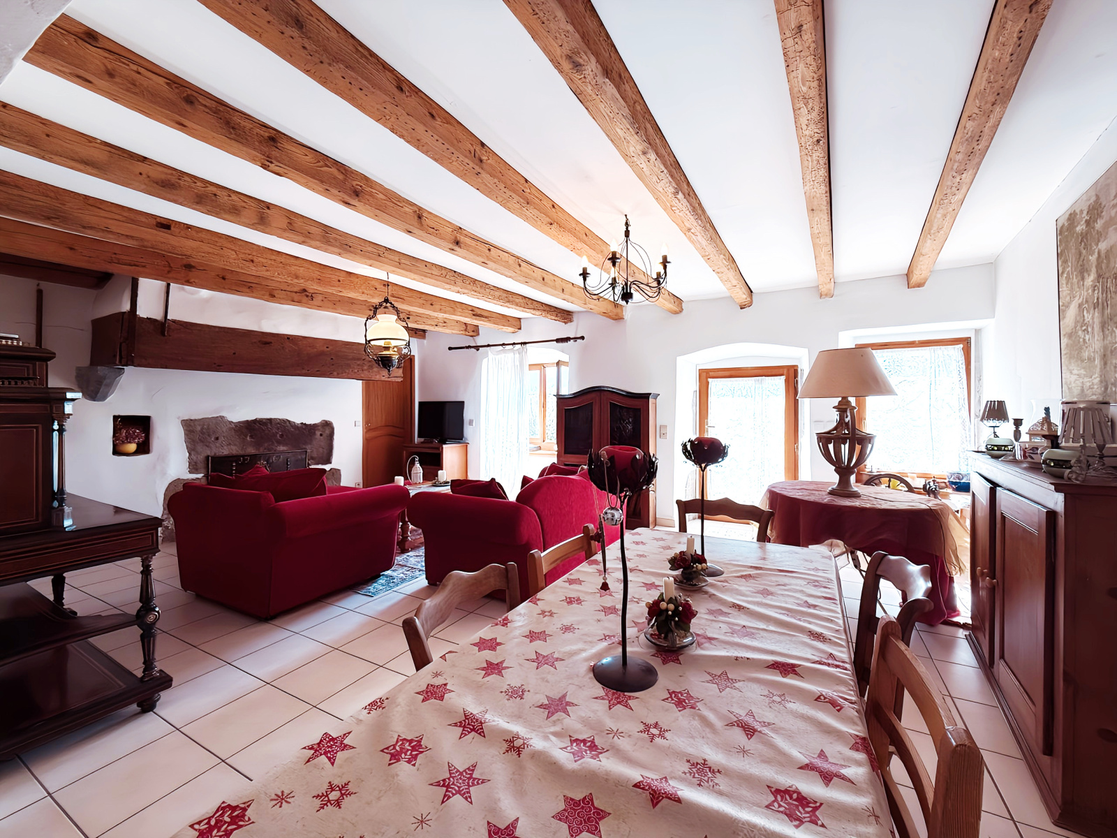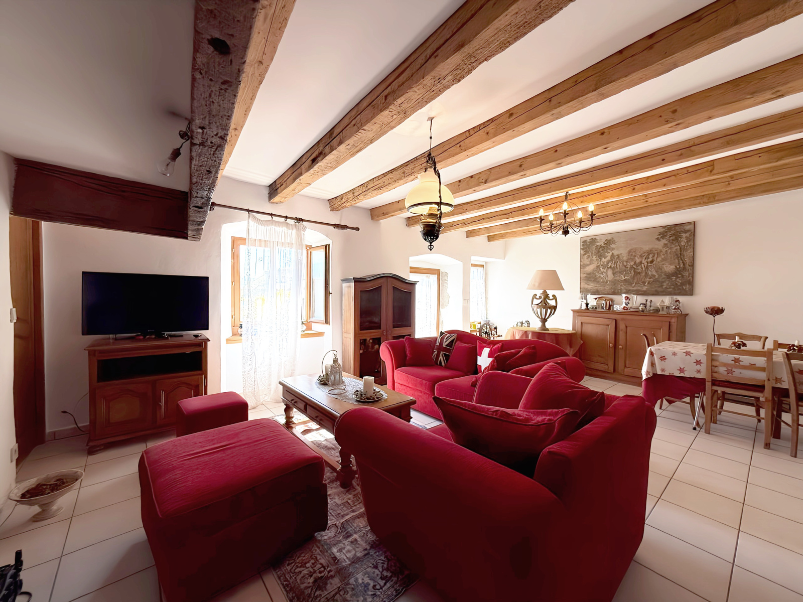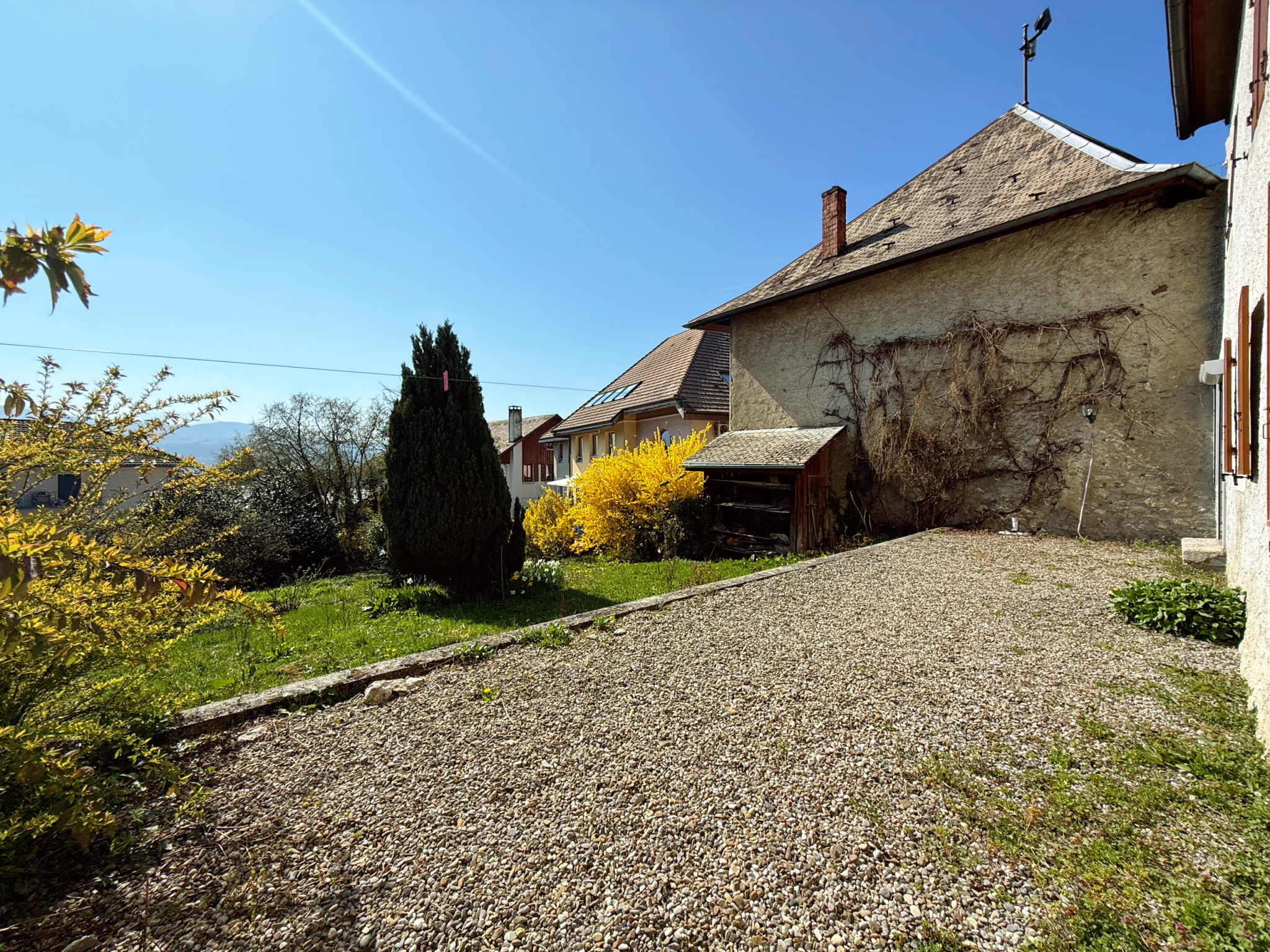 Dans une maison de village de 1761, au cœur du centre-bourg de Viuz-en-Sallaz, charmant 3 pièces rénové de 94 m2 au rez-de-chaussée d'une copropriété de deux appartements, comprenant :
