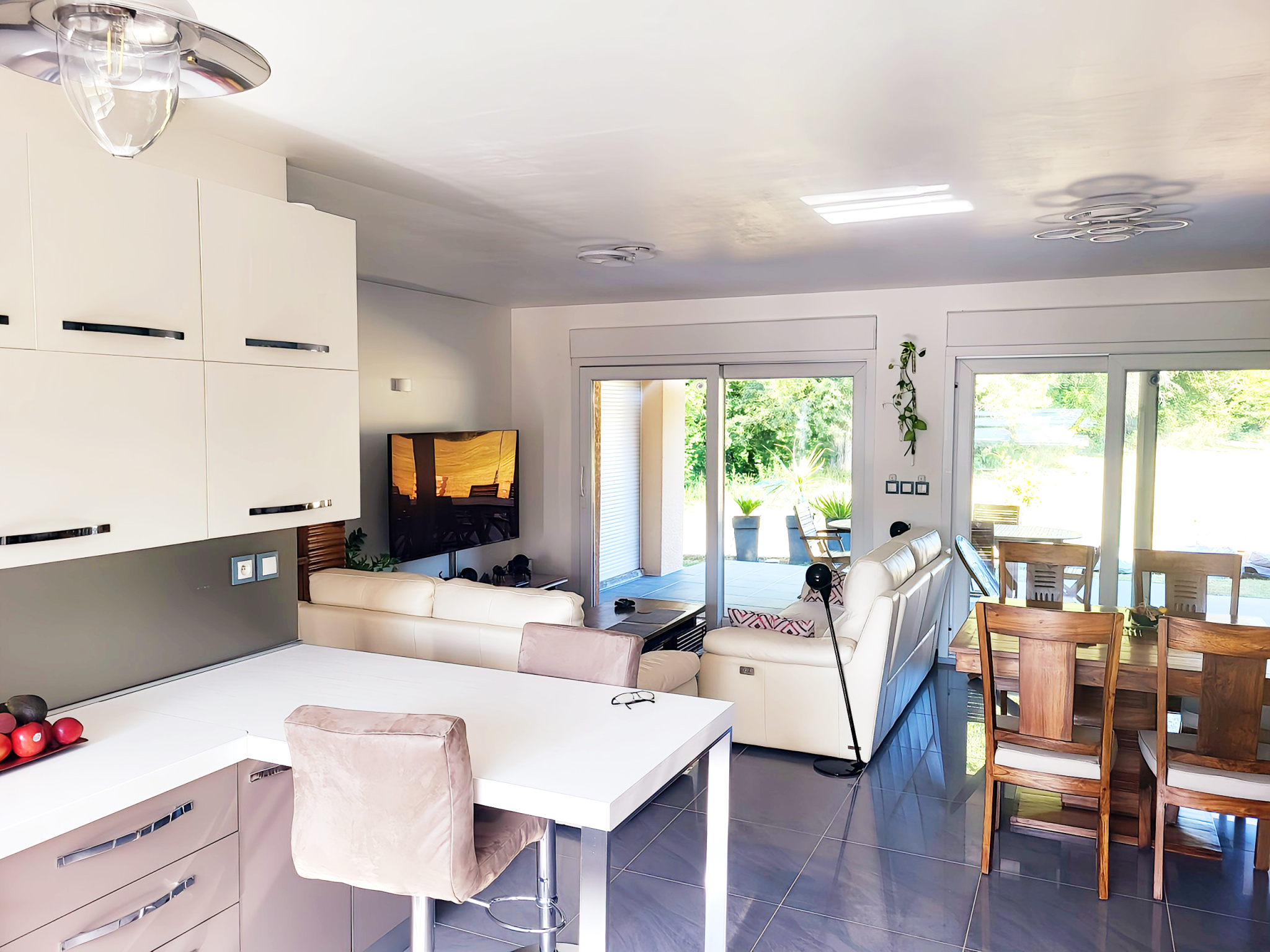 - Une cuisine moderne, entièrement équipée, ouverte sur le séjour