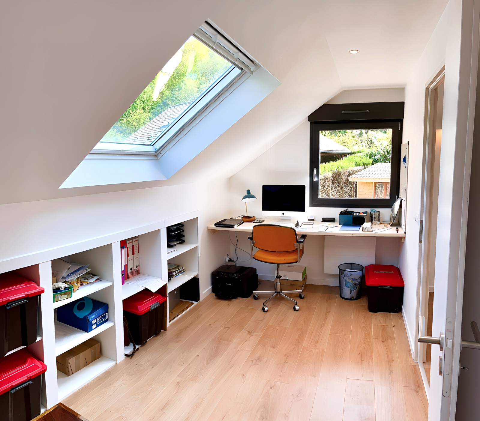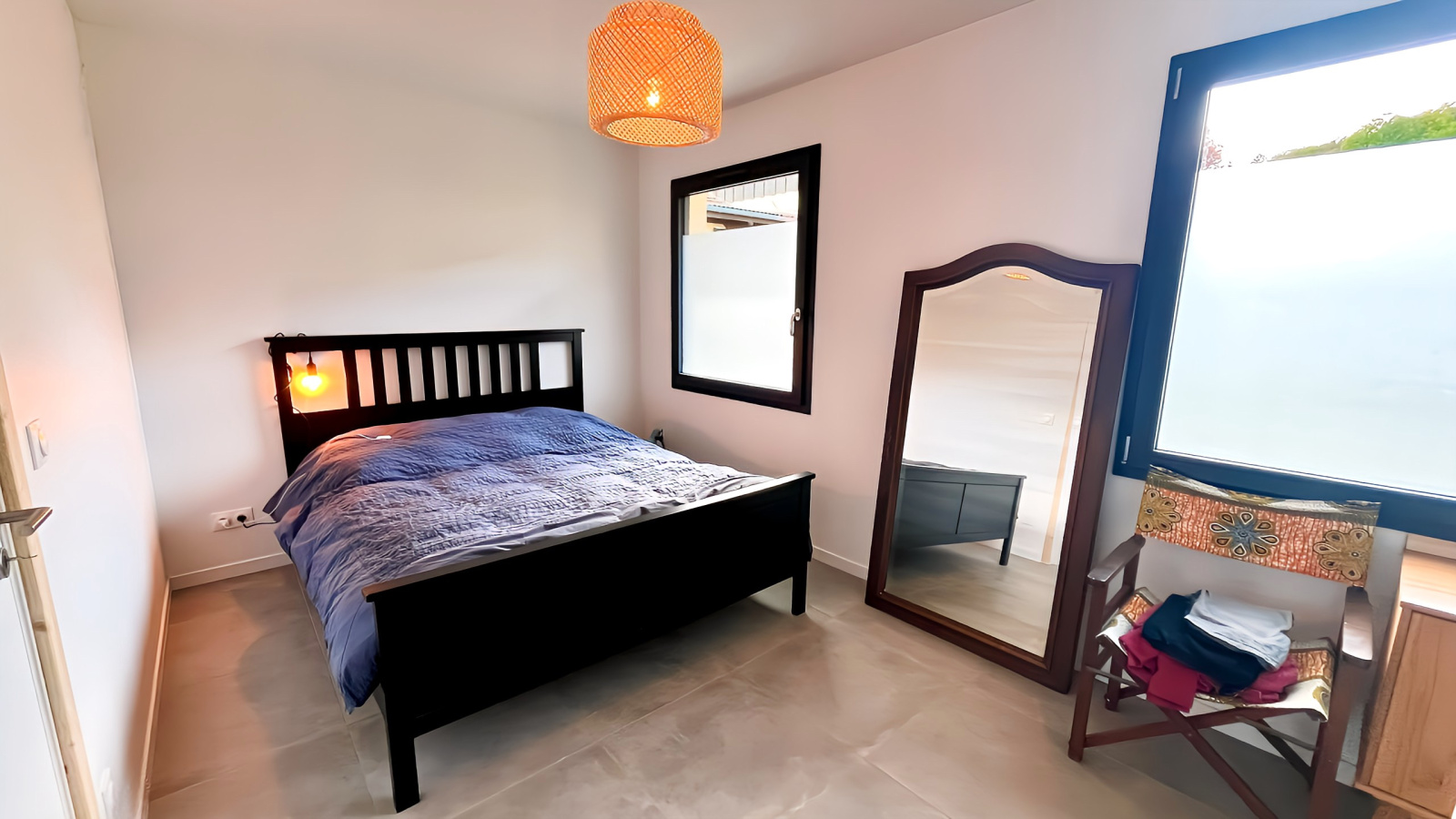 A l'étage : deux chambres, un bureau/chambre d'amis ainsi qu'une salle d'eau.