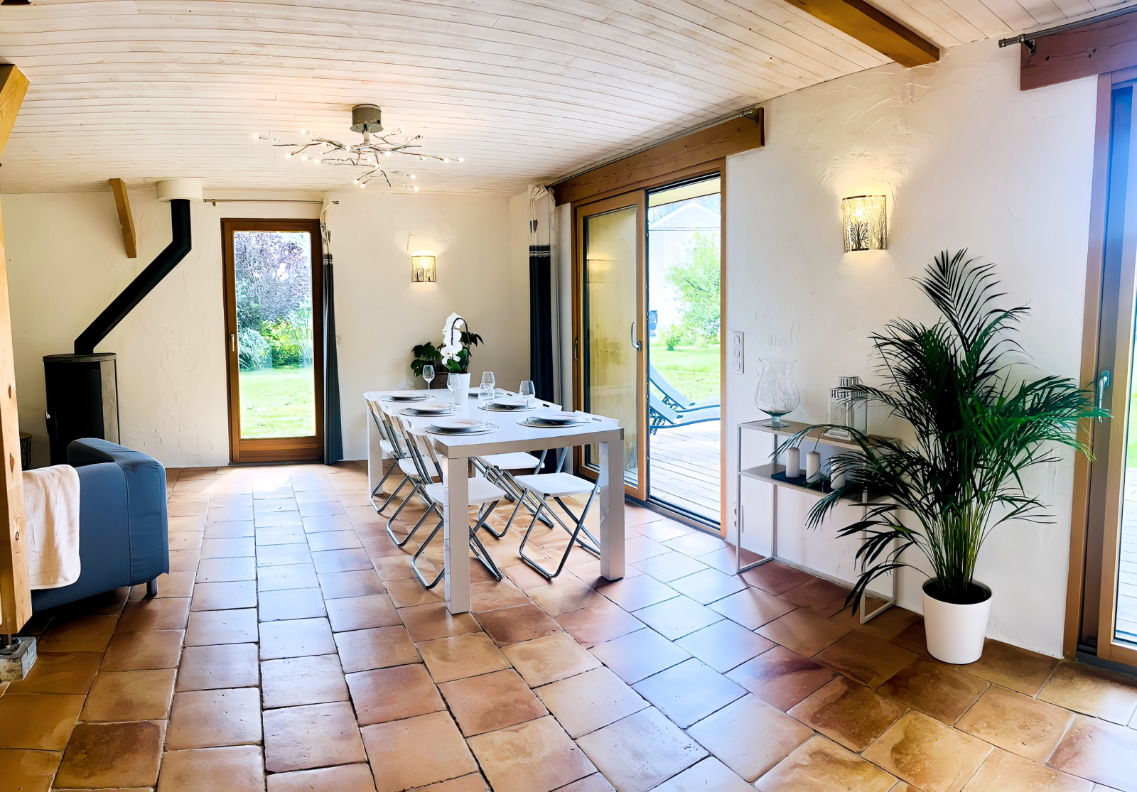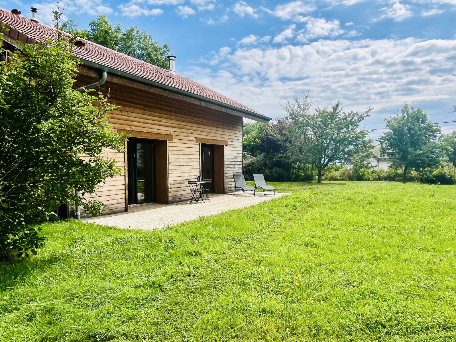 - Une large terrasse en bois de 30 m², exposée sud